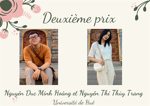 «Je trouve que ce concours est très intéressant dans la mesure où il me permet de travailler l’écriture en français tout en s’intégrant à une communauté, la communauté francophone, en l’occurrence… Ce sujet, qu’on a traité, Uyên et moi, il me tenait vraiment à cœur, d’autant plus à cœur qu’il a trait à de vraies rencontres très marquantes», nous confie Nguyên Lê Diêu Thu.