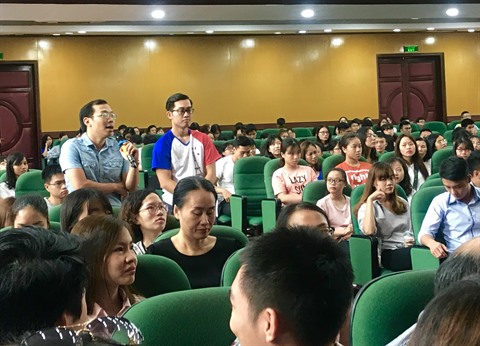 Pour changer de format, au lieu des présentations habituelles par diapos qui ennuient parfois les participants, cette année, les organisateurs ont arrangé une table-ronde en présence d’étudiants vietnamiens en France et d’alumnis qui étaient prêts à répondre à toutes les questions des futurs étudiants. Sept points principaux ont été traités, ceux qui intéressent le plus les futurs étudiants: préparation du départ, gestion du budget, logement, inscription à l’université et démarches de couverture santé, démarches OFII, trouver un emploi étudiant ou un stage en France et enfin la vie étudiante au quotidien. Thùy Linh, une jeune étudiante, qui viendra en France pour faire son master cette année, indique: