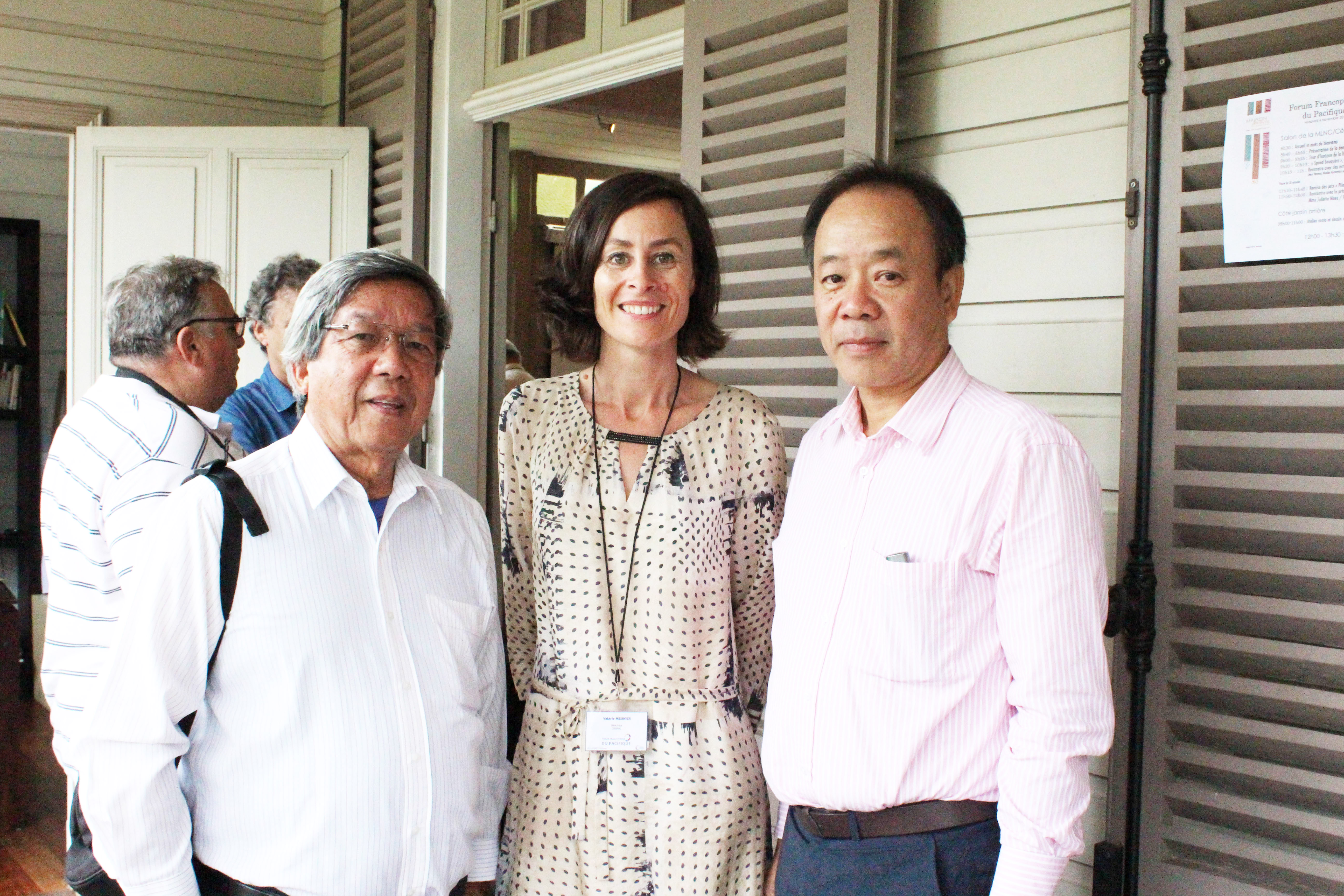 ![]() Jean Vanmai (à gauche) lors d'une rencontre avec des écrivains de Nouvelle-Calédonie. Photo: Duc Quy/VOV |