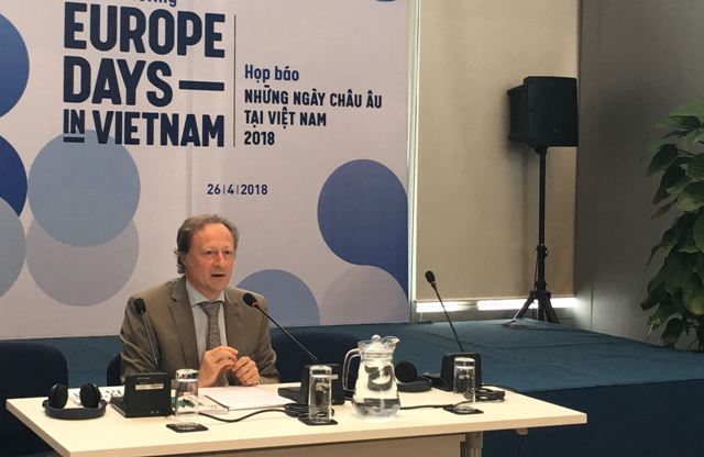 Comme le veut la tradition, la célébration "Les journées européennes" démarrera chaque année au mois de mai. L'événement de 2018 est marqué par la présence de la Délégation de l’Union européenne, des ambassades des pays membres de l’Union européenne et des centres culturels européens au Vietnam. Bruno Angelet, ambassadeur et chef de la Délégation de l’Union européenne au Vietnam a fait savoir:
