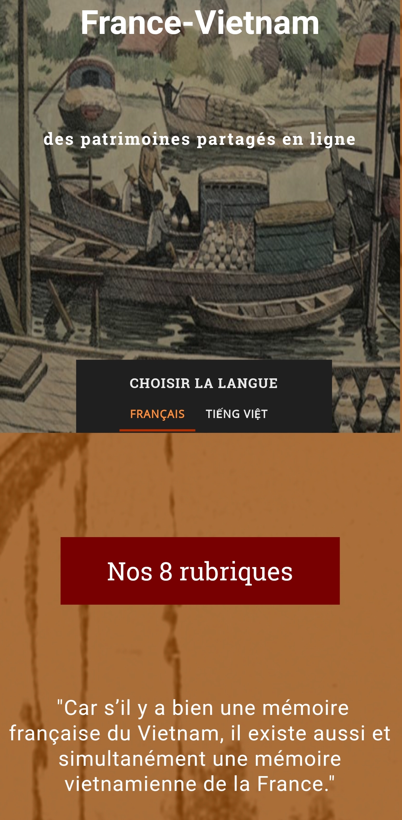 Actuellement, cette bibliothèque numérique est disponible en ligne à l’adresse https://heritage.bnf.fr/france-vietnam. Grâce à un nouveau format plus ergonomique et dynamique, elle permet une navigation fluide et un accès facile aux documents qui sont répartis en 8 rubriques: circulation, traditions, pensée et spiritualité, littérature, transferts culturels, gouvernements et dynasties, sciences et société, et enfin vie économique.