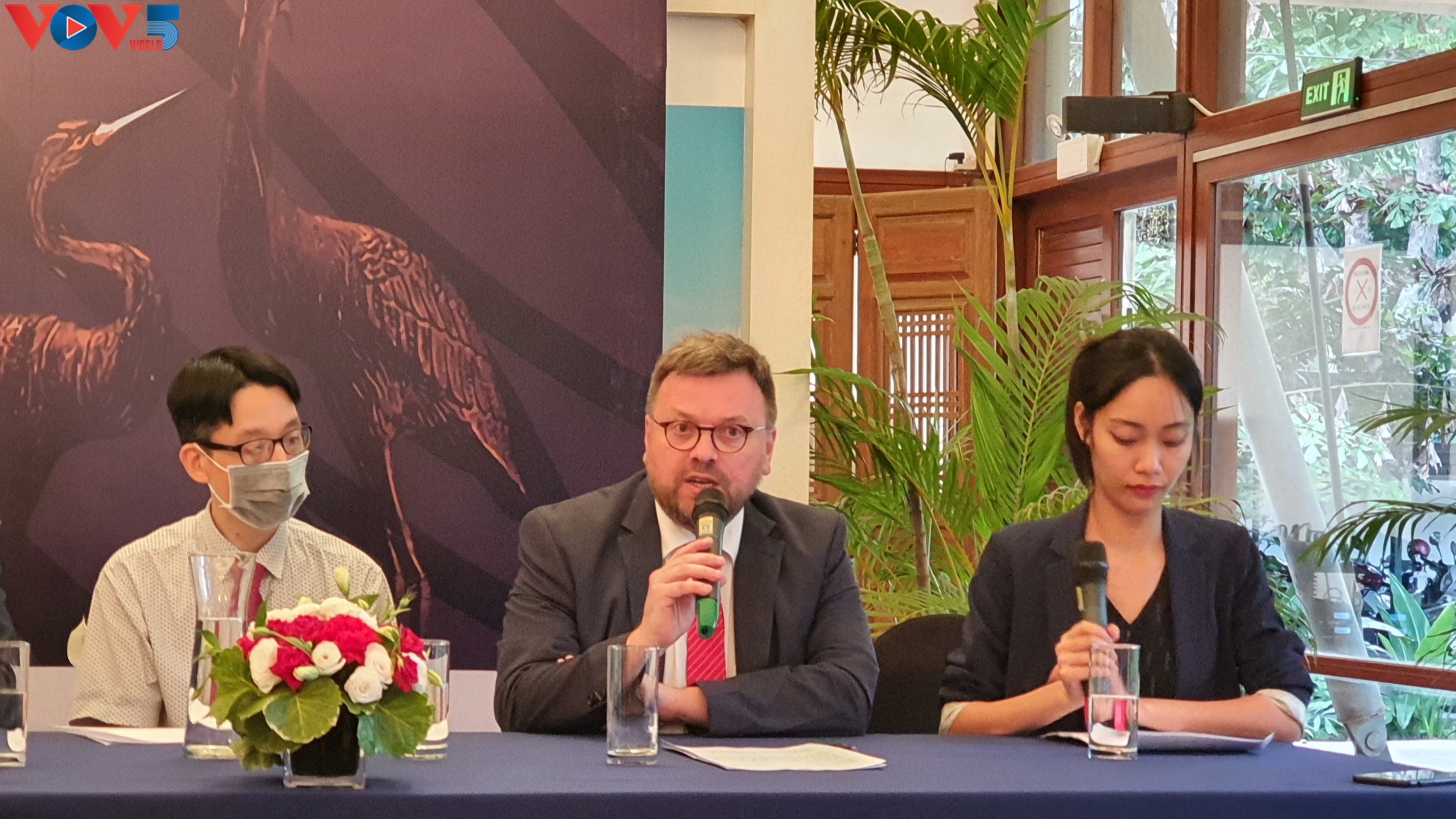 Denis Duclos (centre), directeur des relations extérieures du Musée national d’histoire naturelle. Photo: Duc Quy/VOV5 |