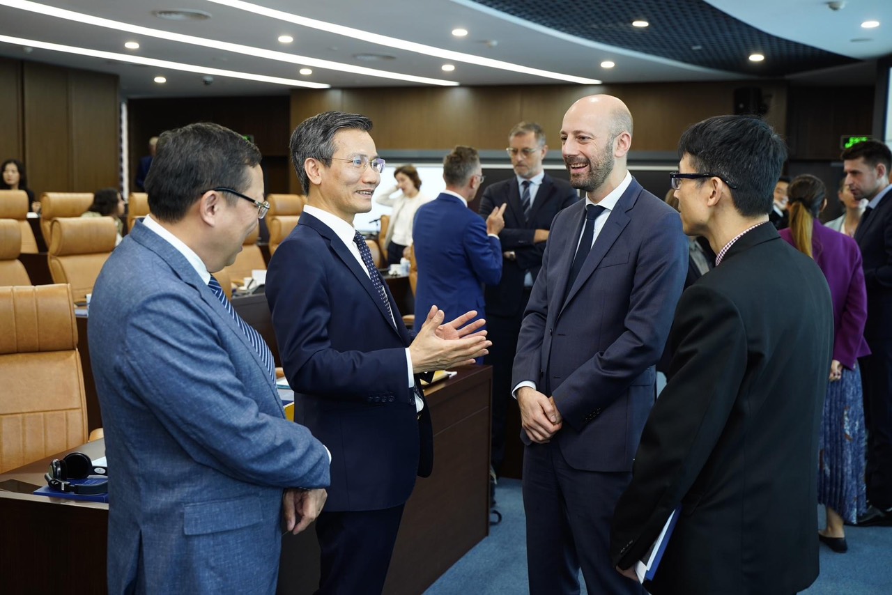 Cao Huy, le vice-président du Bureau du gouvernement vietnamien (Deuxième à gauche) discute avec Stanislas Guerini, le ministre français de la Transformation et de la Fonction publiques (Deuxième à droite)Photo: Ambassade de France au Vietnam