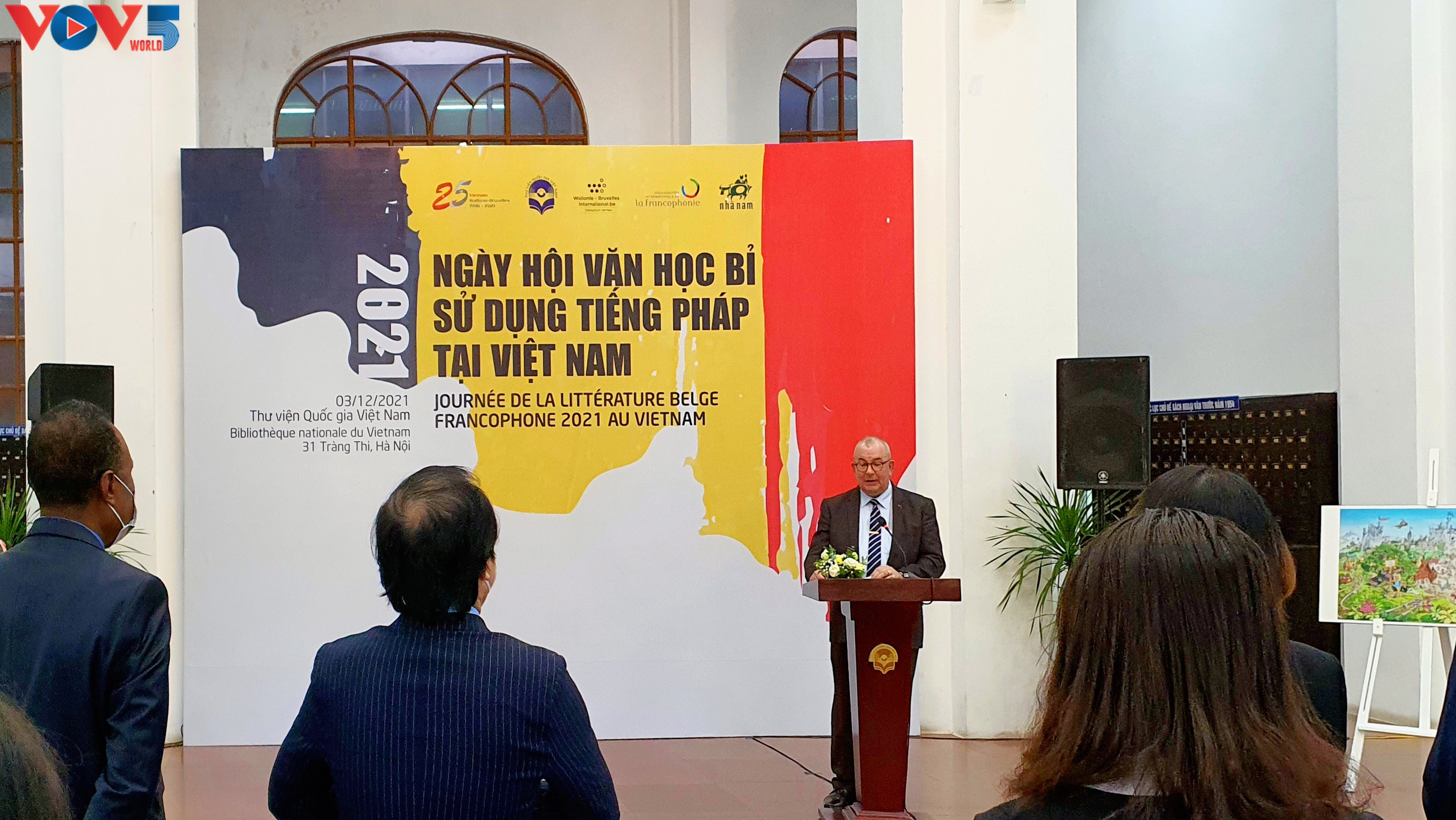 Paul Jansen, l’ambassadeur de Belgique au Vietnam s'est exprimé lors de la Journée de la Littérature belge francophone 2021. Photo: Duc Quy/VOV5 |