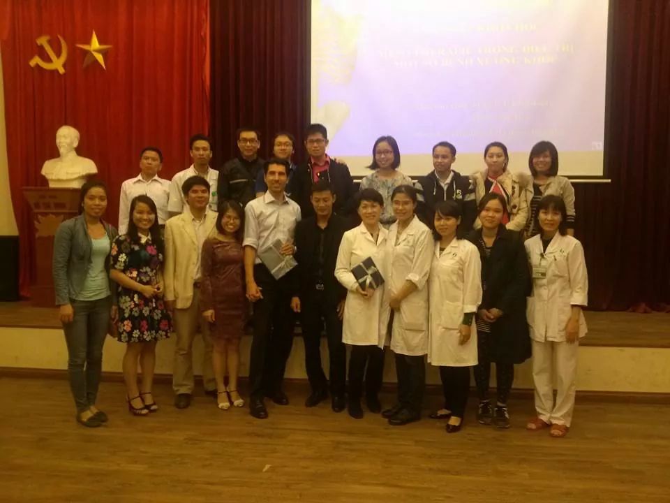 « En France comme au Vietnam, il y a beaucoup de personnes qui ont beaucoup travaillé dans leur vie. Quand ils arrivent dans leur soixante, soixante-dix ans, ils ont beaucoup de douleurs dans leur dos, au cou, aux épaules. Et là, on peut vraiment aider les personnes âgées, on peut vraiment les soulager. Et les produits ne coûtent pas très chers. La mésothérapie, ça entraîne dans une démarche médicale. Ce qui est le plus important tout d’abord, c’est le diagnostic. Et ça, vous pouvez le faire. Vous avez des produits qui sont très bons, vous avez la lidocaine, la calcitonine, vous avez le piroxicam. Donc déjà avec ces trois produits, vous pouvez déjà commencer demain, la mésothérapie. Nous allons juste vous montrer un technique, et puis c’est les professeurs qui vont former les autres. »