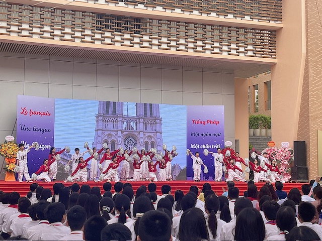 La cérémonie d’inauguration de la plaque LabelFrancÉducation, à la fois solennelle et festive, s’est ouverte sur une prestation de tambours, suivie d’un numéro de danse et d’un mashup de chansons vietnamiennes et françaises interprété par les élèves, illustrant l’énergie des échanges culturels et l’intérêt croissant des jeunes pour la langue française.