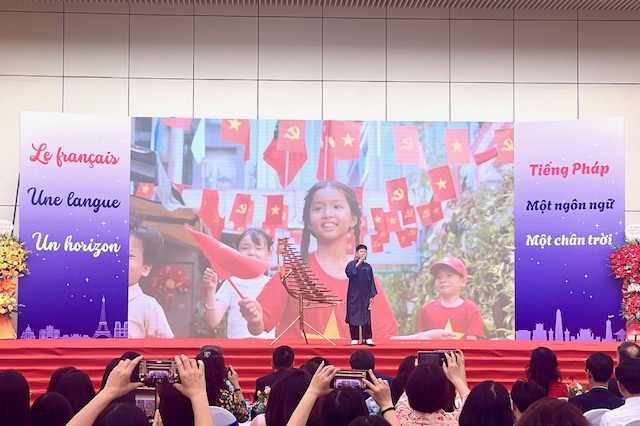 Un élève présente un mashup de chansons vietnamiennes et françaises. Photo: Phuong Anh/VOV5
