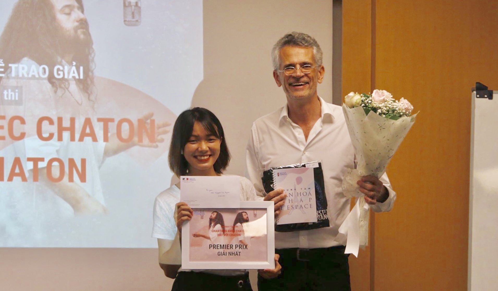 La musique, c’est ma passion. Alors quand on m’a dit qu’il y avait un concours de chanson en français, ça m’a beaucoup intéressé. Et je me suis inscrite tout de suite, même si je n’avais aucune idée de la chanson que j’allais pouvoir choisir, forcément… Alors bien sûr, il y avait la perspective de recevoir un prix, mais pour moi, la chose la plus alléchante, c’était de pouvoir me produire avec un artiste français archiconnu.