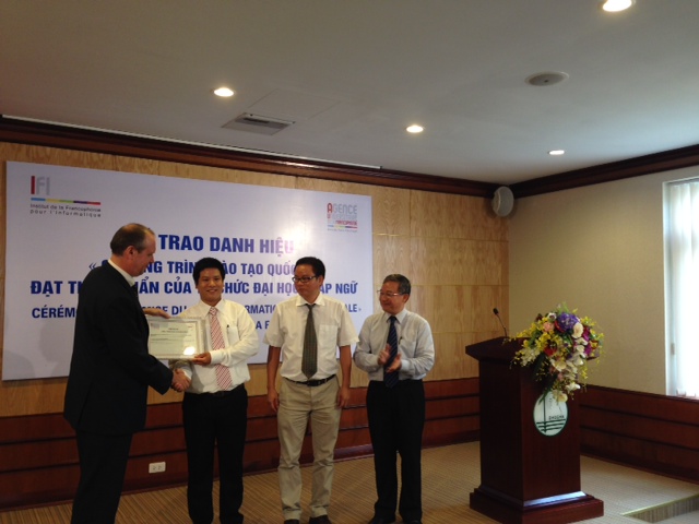 (VOVworld) – Le Master en Informatique de l’Institut de la Francophonie pour Informatique (IFI), rattaché à l’Université nationale du Vietnam à Hanoï, est désormais qualifié de « formation internationale ». La cérémonie de remise de ce label a eu lieu lundi, le 21 juillet, à Hanoi, sous les auspices de l’Agence Universitaire de la Francophonie (AUF).