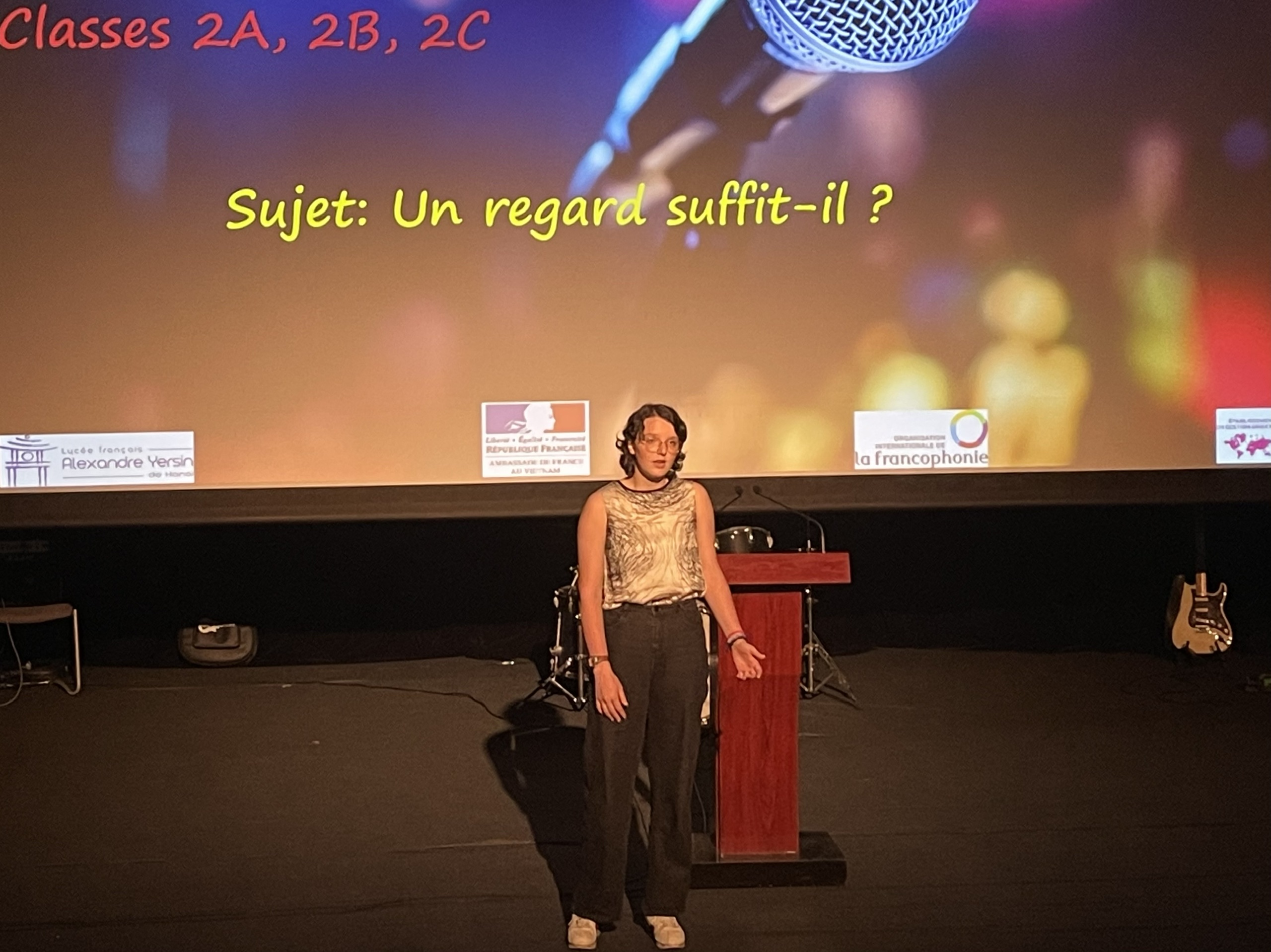 «Un regard suffit-il?», «Toute vérité est-elle bonne à dire?», «Faut-il arrêter celui qui rêve de voler?». C’est sur ces trois sujets que les candidats ont dû plancher, et ils n’ont eu que deux semaines pour préparer leurs prestations… Mais qu’à cela ne tienne, et les membres du jury, eux, en prennent plein la vue, à l’instar de Lucile Bruand, qui est attachée de coopération éducative de l’Ambassade de France au Vietnam.