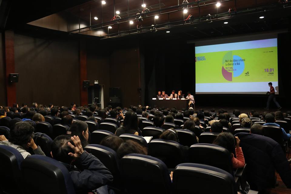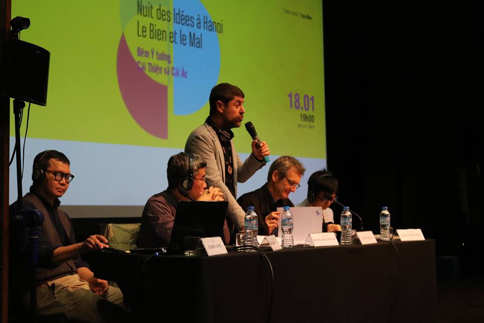 Vous n’êtes ni dans une salle de spectacle, ni dans une salle de conférence, ni dans un amphithéâtre, mais dans un café, un café philo, un endroit où on échange des idées. Partout dans le monde, en ce moment même, et pendant toute la deuxième quinzaine de janvier, les Institut français organisent une nuit des idées qui consiste à inviter des scientifiques, des auteurs, des artistes à débattre sur des sujets qui préoccupent notre société contemporaine. Le thème choisi pour cette première Nuit des idées au Vietnam : le bien et le mal.