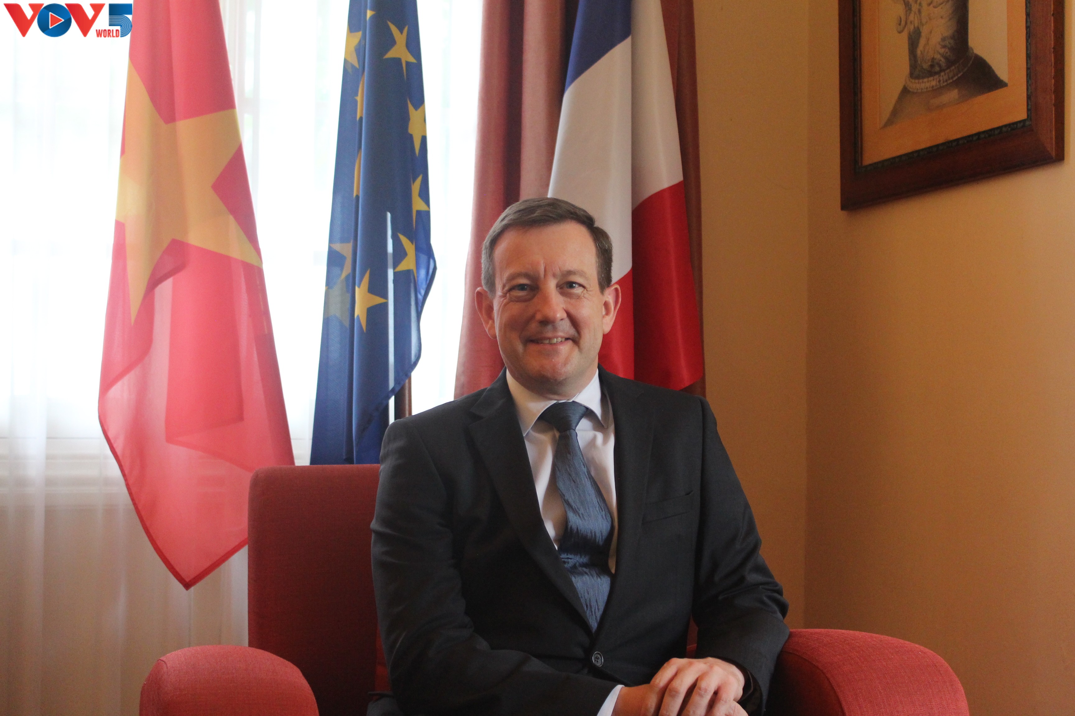 Je suis au Vietnam depuis bientôt trois ans. Je crois que c’est une chance et un privilège pour un diplomate français que de servir son pays ici au Vietnam. D’abord parce que le Vietnam et la France ont une histoire commune qui est extraordinairement riche et qui est faite de beaucoup d’intérêts communs. Mais aussi, je crois, plus profondément que ça, de fascination et d’attachement l’un pour l’autre. Je suis toujours frappé et je l’ai été au fil de ces trois années, de voir la chaleur avec laquelle nos amis vietnamiens nous parlent de la France, nous parlent de la relation entre nos deux pays et qui renvoie à ce que les Français disent spontanément quand ils parlent du Vietnam. Pour les Français, le Vietnam n’est pas un pays comme les autres. C’est un pays qui est un peu plus près de leur cœur.