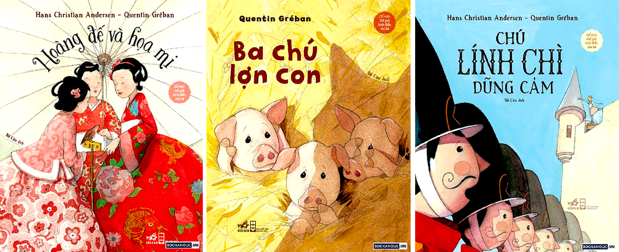 Quentin Gréban: Mes inspirations sont avant tout, graphiques. Mes idées viennent de ce que je voie, d’un voyage au Vietnam par exemple, où je vois des câbles électriques branchés dans tous les sens. Alors je me dis «Tiens, je vais dessiner l’histoire d’un oiseau qui veut se poser sur un fil mais il y en a 120 mille dans tous les sens». Mes idées viennent de mon envie de dessinateur. Après, mes enfants sont «utiles» dans le sens: quand je commence un dessin, je vais d’abord le crayonner en noir et blanc, et le mettre en couleur, cela peut prendre un jour ou deux. Et si à la fin de deux jours de travail je me rends compte que les enfants ne comprennent pas, je rate mon dessin même s’il est très joli. Donc souvent après je le montre à mes enfants, je leur demande de me décrire l’image. Mes enfants m’aident à voir si mon public peut comprendre mes dessins.