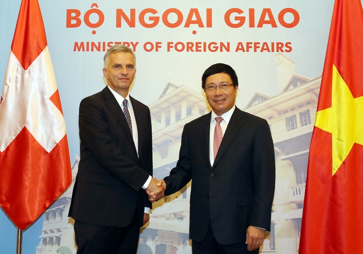 Le vice-Premier ministre et ministre des Affaires étrangères Pham Binh Minh a eu le 2 juin un entretien avec Didier Burkhalter, entretien au cours duquel il s’est déclaré convaincu que cette visite allait permettre une véritable percée dans les relations entre les deux pays : "La visite de Didier Burkhalter au Vietnam est un événement important, qui va permettre de renforcer les relations des deux pays, qui sont d’ailleurs sur le point de célébrer le 45ème anniversaire de l’établissement de leurs relations diplomatiques. Je me félicite que le gouvernement suisse ait décidé d’ouvrir un consulat général à Ho Chi Minh-ville. Sur le plan économique, la Suisse est actuellement un partenaire européen de première importance pour le Vietnam, avec un volume d'échange entre 800 et 900 millions de dollars par un. Plusieurs entreprises suisses ont actuellement des projets d'investissement importants au Vietnam."