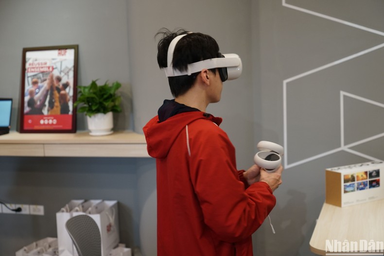 Un étudiant essaye la casque de réalité virtuelle (photo: Trung Hung/nhandan.vn) |
