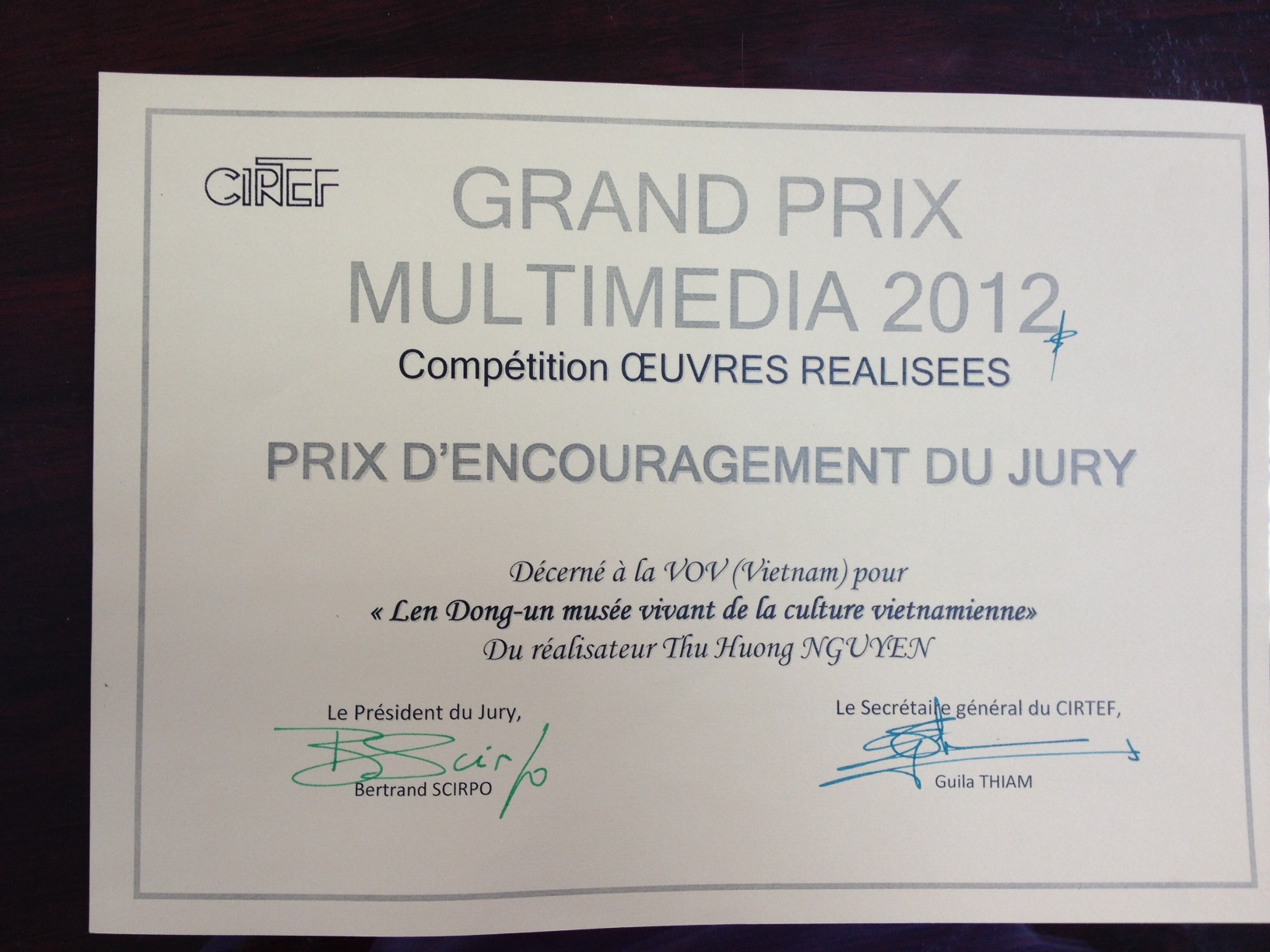 Le CIRTEF organise annuellement le Grand Prix Multimédia, concours destiné à récompenser des productions radiophoniques, télévisuelles et Internet se distinguant par leurs qualité de fond et de forme ainsi que par l’originalité de leur sujet. Cette année, outre le prix remis à la Voix du Vietnam, le jury a aussi décerné un Grand Prix, un prix spécial à TV5 Québec-Canada et un autre prix d’encouragement à la Radio Télévision du Cameroun.
