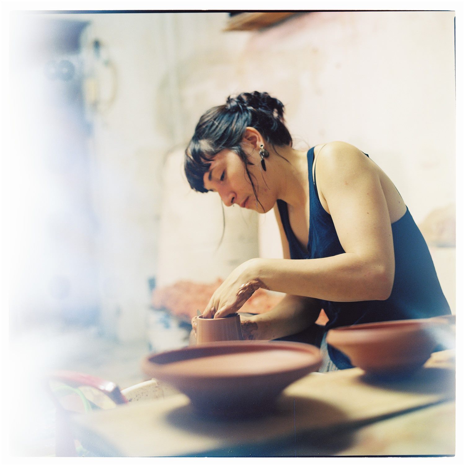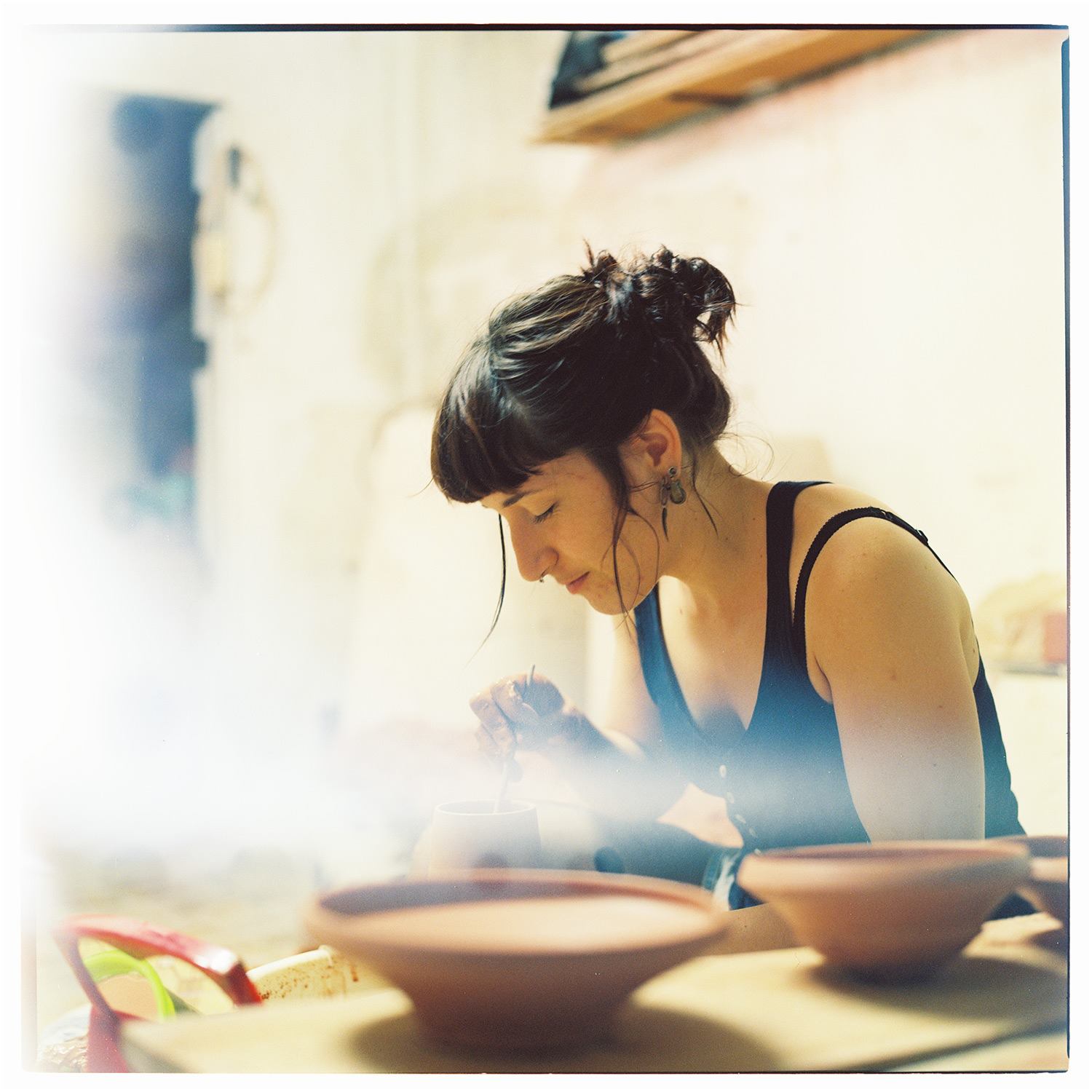 Thi.bli: Il faut beaucoup de patience… et être assez calme quand on est céramiste. Il y a beaucoup de choses qui sont compliquées. Il faut réussir à rester calme et à accepter l’échec qui peut de toute façon apporter que de l’expérience. On passe beaucoup de temps sur une pièce, et même si elle est parfaite avant la cuisson il se peut que quand on la sort du four, elle soit en mille morceaux. On ne comprend pas toujours pourquoi. C’est très compliqué de garder une pièce intacte jusqu’à la fin. J’ai un souvenir d’une touriste à Bat Trang qui a dit «ah oui, l’émail, c’est vraiment la petite touche finale». J’avais envie de lui dire: «Non. C’est la touche fatale.» C’est tellement aléatoire. Parfois une pièce peut sortir du four, complètement explosée à cause d’un défaut d’émail, de cuisson, de température ou de séchage.