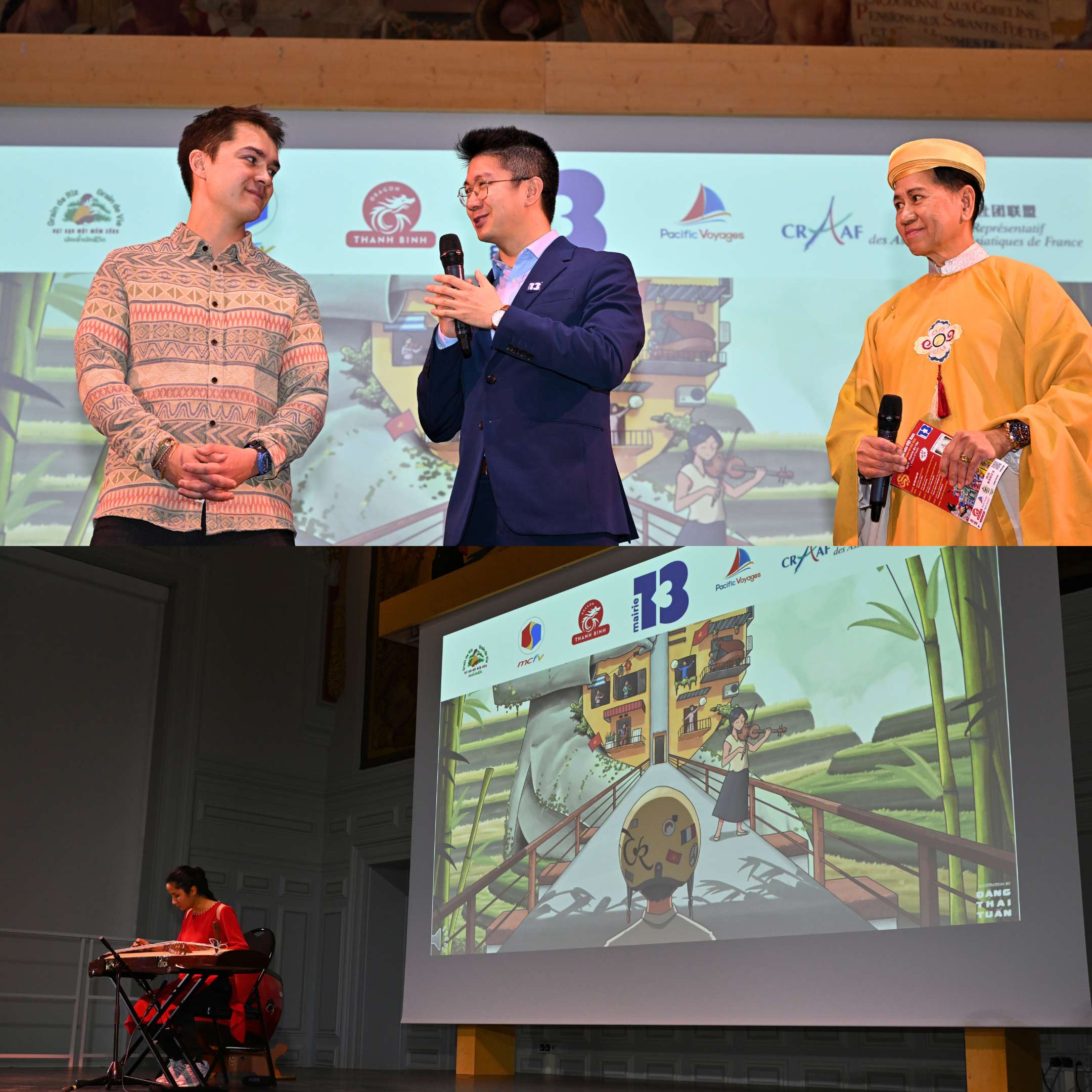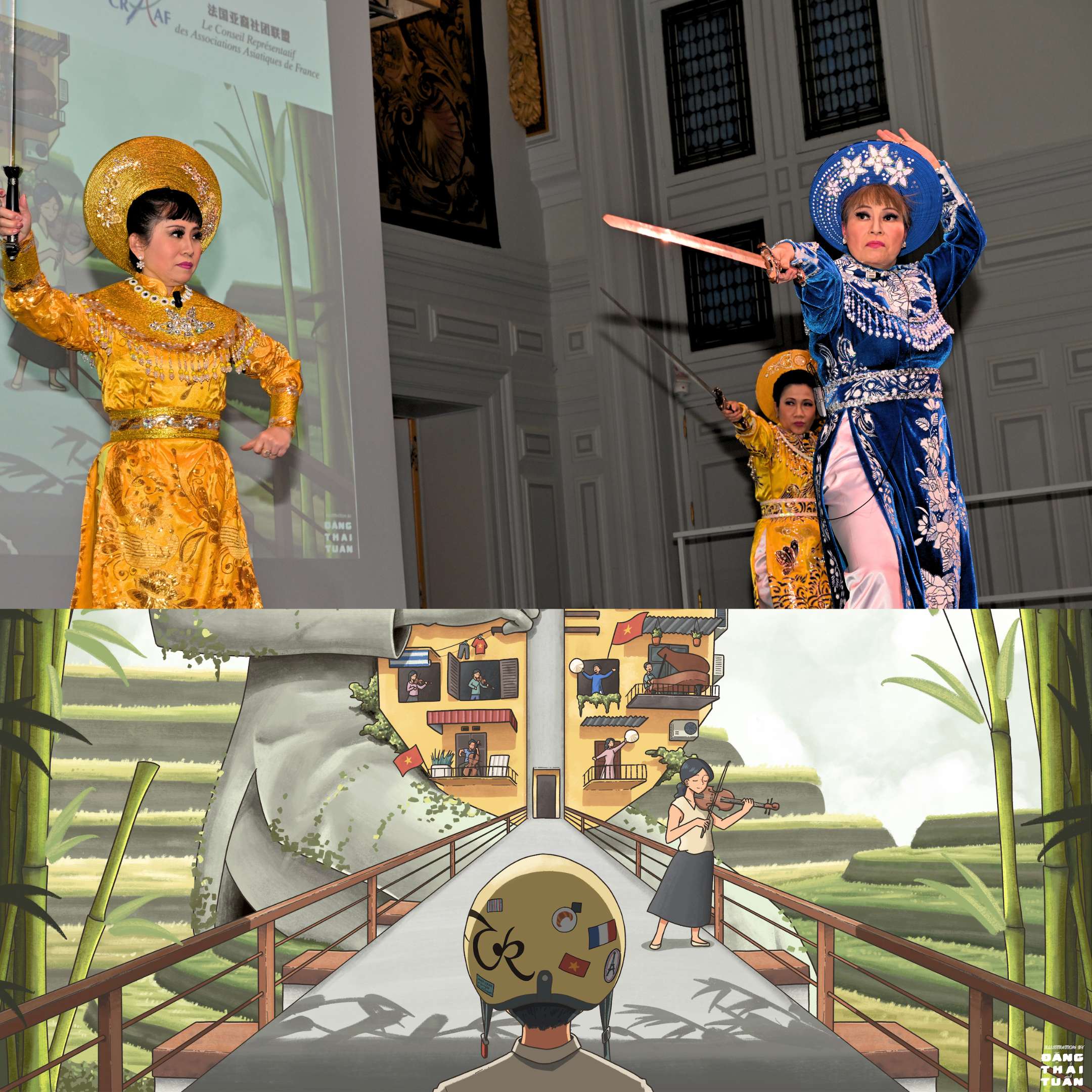 «On m’a confié une salle parisienne magnifique de 500 personnes avec un écran géant. J’ai donc eu pour défi d’amener le plus de monde possible... Pour cet événement j’ai fait confiance à Thanh Binh Jeunes qui est la première épicerie vietnamienne de France depuis 1968. J’ai été très heureux d’avoir leur accord pour me sponsoriser et financer le début de l’événement aux côtés de l’association Grain de Riz Grain de Vie de Michel Blanc et Pacific Voyages. Ils ont choisi les musiciennes et les danseuses: Hai Vanna Nguyen Phuoc, Amy Florentin, Thi Mai, le groupe Tam Duyen… Il y a deux autres associations m’ont aidé: le Conseil Représentatif des Associations Asiatiques de France et le Mouvement des Citoyens Français d’origine Vietnamienne” , nous a-t-il dit.