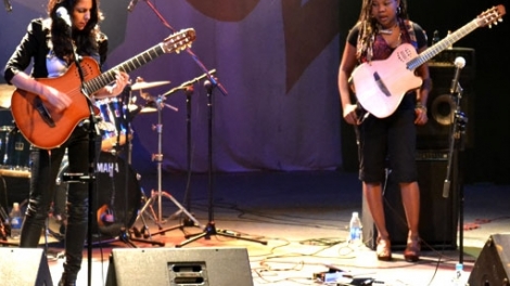 (VOVworld) - Un duo exposif : Manou Gallo et Virna Nova, s'est produit jeudi soir, le 5 avril, au Théâtre de la Jeunesse, dans la capitale. Ce duo est au Vietnam pour participer au Festival de Hue qui se tiendra du 7 au 15 avril dans l’ancienne citadelle. Manou Gallo, lead vocal, basse et guitare et Virna Nova, guitares & backing vocal, sont membres de « Women band », un groupe belge de 5 femmes.