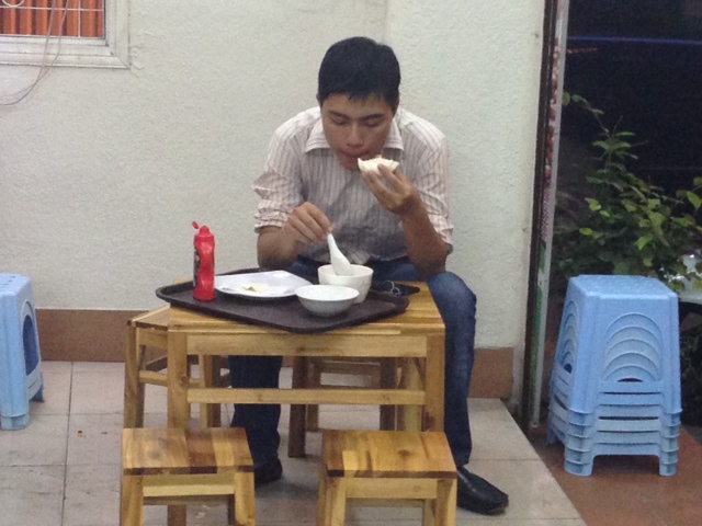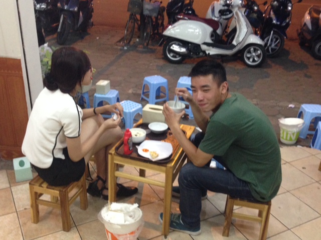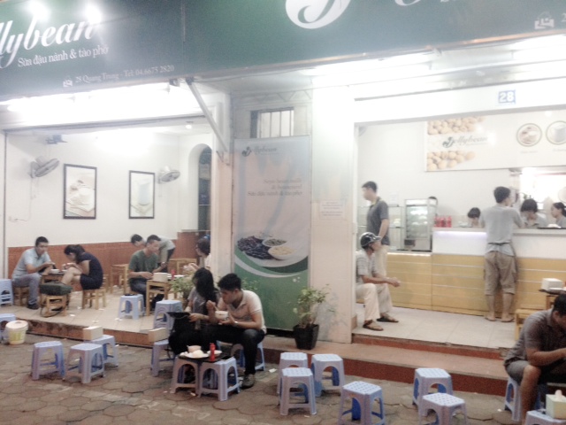 Je suis maintenant au milieu d’une trentaine de jeunes qui sont en train de papoter, des bols de tofu soyeux ou des verres de lait de soja à la main. Hong Hanh et Trung Hieu, deux d’entre eux, me confient :
