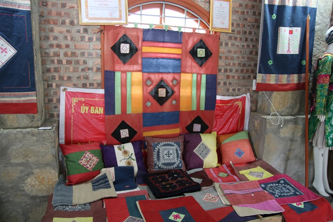«Il y a dans le village une cinquantaine de foyers Mông. Moi, je travaille ici depuis les premiers jours. Notre groupe de production comporte une vingtaine de personnes, chacune ayant une tâche bien précise à accomplir. Moi, par exemple, je confectionne des housses de coussin, des sacs, des vêtements, des stores, des rideaux, des écharpes… Je suis contente de mon travail parce que ça me laisse suffisamment de temps pour m’occuper de ma maison», nous confie-t-elle.