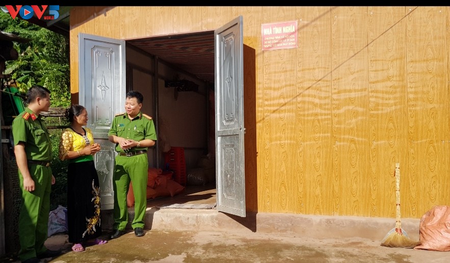 Des cadres locaux rendent visite à Lo Thi Quyêt. Photo: Ngoc Anh/VOV5 |