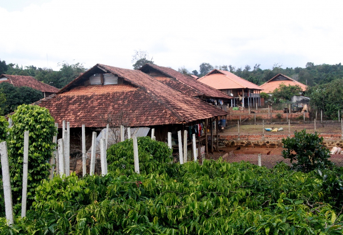 Niché au cœur d’une vallée, le village de Quang Hoà est entouré de vastes plantations de caoutchouc et de café verdoyantes. Dans ce village, les maisons sur pilotis conservent encore l’architecture et la décoration traditionnelles de l’ethnie Nùng de Cao Bang, une province montagneuse du Nord-Est. Doté d’un climat propice à la culture de nombreuses variétés d’arbres, cet endroit a su attirer une importante population de Nùng An de Cao Bang qui y a déménagé pour tenter sa chance. C’est le cas de Nông Van Minh qui s’est installé à Quang Hoà en 1987.