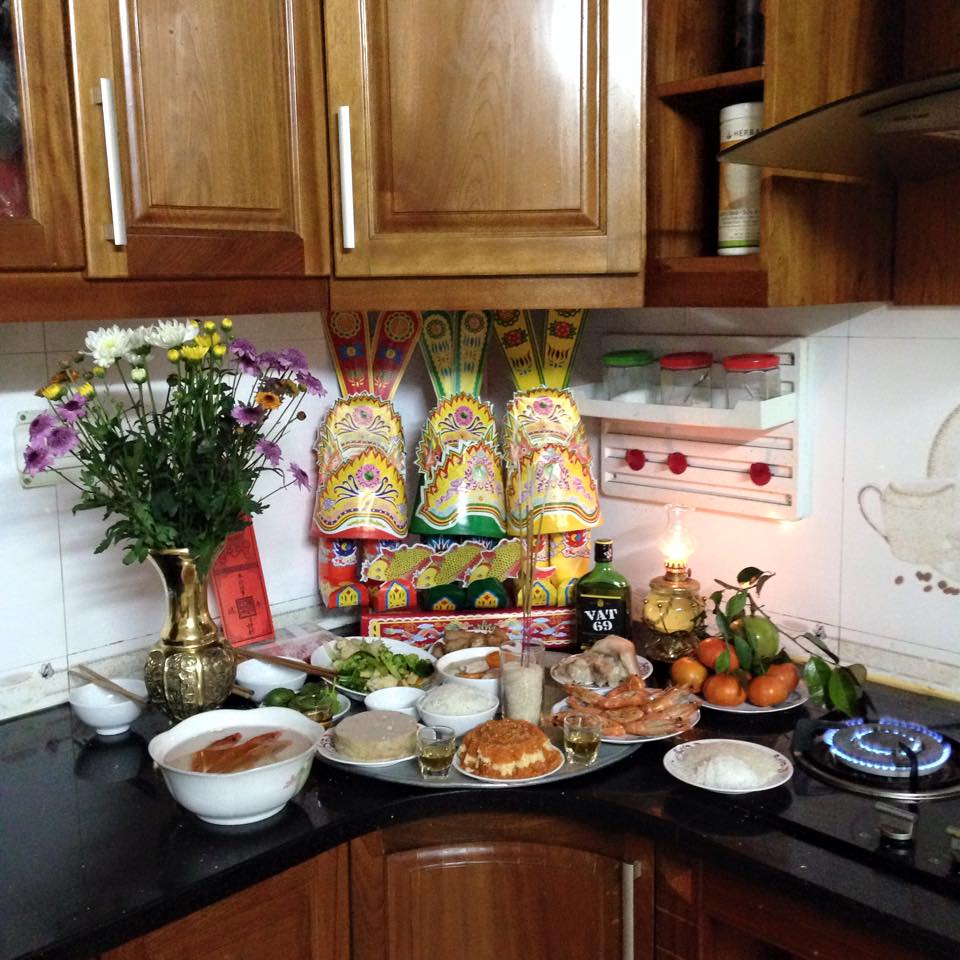La cérémonie de départ des Génies du Foyer s’effectue souvent dans la cuisine où se trouve leur autel. Pour les familles qui n’ont pas d’autel dédié aux Tao Quân, on prépare un plateau d’offrandes dans la cuisine et on ajoute un autre plateau sur l’autel des ancêtres où se tiendront les rituels principaux. Après cette cérémonie, toute la famille se réunit pour manger et discuter des préparatifs pour le Tet. Tran Trong Xuan, qui habite la rue Hao Nam, à Hanoi, partage: