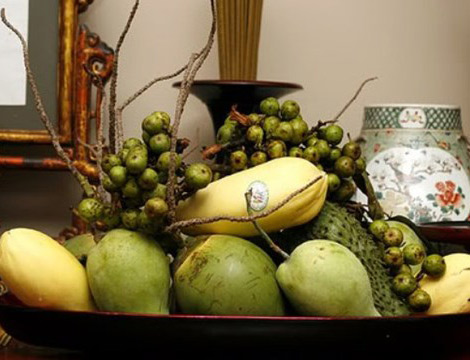 On ne peut parler du Têt sans parler de l’incontournable plateau aux cinq fruits. Dans le Nord, les habitants présentent généralement des bananes, des pamplemousses, des kakis, des mandarines et des kumquats. Dans le Sud, on préfère les corossols, les noix de coco, les papayes et les mangues dont la prononciation des noms en vietnamien signifie « souhaiter juste ce qu’il faut », en français. Les Vietnamiens du Nord accueillent le Têt avec le rouge des fleurs de pêcher, ceux du Centre et du Sud voient leur univers s’illuminer avec le jaune des fleurs des abricotiers ou des chrysanthèmes.