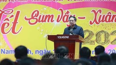 Pham Minh Chinh se rend au «Têt des retrouvailles-Printemps de cohésion» à Nam Dinh