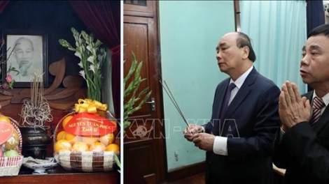 (VOVWORLD) - À l’occasion du Nouvel An lunaire et de l’anniversaire du Parti communiste vietnamien, le Premier ministre Nguyên Xuân Phuc a rendu hommage mercredi au Président Hô Chi Minh à la maison 67, au site commémoratif au sein du Palais présidentiel à Hanoï.
