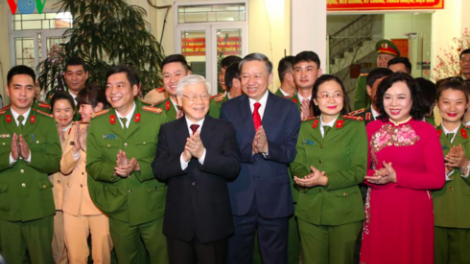 (VOVWORLD) - Lundi soir, le secrétaire général du Parti communiste vietnamien et président de la République Nguyên Phu Trong est allé formuler ses voeux du Nouvel An lunaire à des services qui travaillaient au réveillon.
