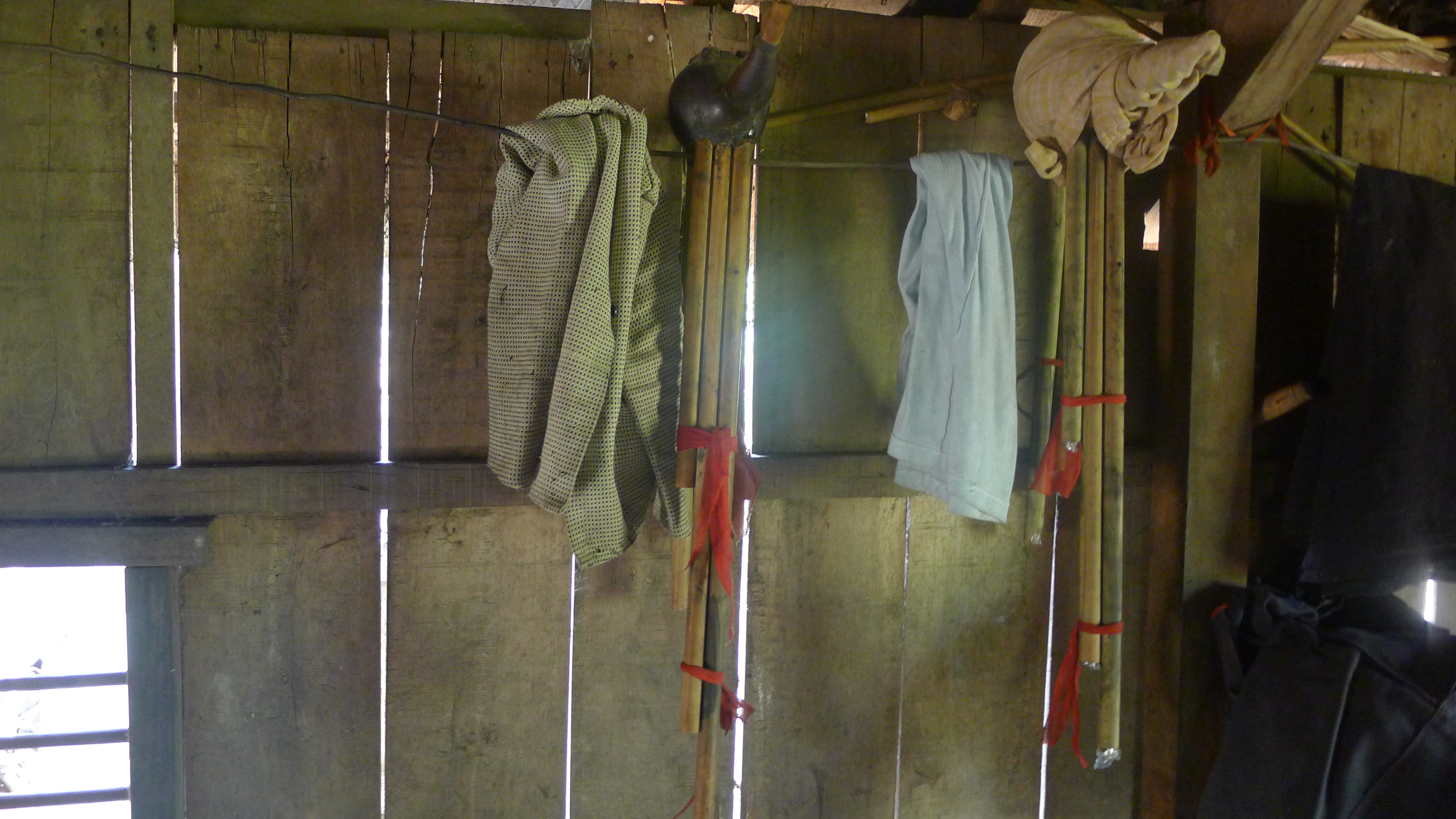 Sa maison longue est aussi le lieu d’exposition des instruments de musique qu’il a fabriqués. La plupart du temps, il confectionne des clairons et des tambours. Oi Blu : «Je sais jouer de la musique depuis l’âge de 18 ans. C’est mon père qui me l’a appris. Puis, curieux que je suis, je suis venu voir d’autres personnes âgées du village pour leur demander de m’apprendre davantage. Mais maintenant, je vois que les jeunes ne sont plus aussi intéressés par la musique traditionnelle. Quand je serai mort, qui héritera de mon savoir?»