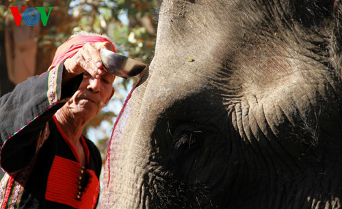 De nos jours, la capture des éléphants en milieu sauvage est interdite par la loi. Mais le métier de dresseur existe toujours chez les M’Nong. 50 éléphants sont aujourd’hui au service des villageois de Ban Dong et de la commune de Lien Son, rattaché au district de Lak. Les rituels réservés à l’éléphant sont aussi minutieusement préservés. Dam Nang Long, issu d’une famille de 4 générations de dresseurs à Buon Don : « À part des valeurs matérielles, l’éléphant a également des valeurs spirituelles et culturelles. Lors de la saison des pluies, un culte est destiné à informer l’éléphant que les forces célestes lui ont donné la nourriture. Lors de la saison sèche où la nourriture est épuisée, on organise une autre cérémonie pour encourager l’animal. Les M’Nong éprouvent un sentiment exceptionnel pour l’éléphant. Il est un compagnon, mais aussi un membre de la famille. »