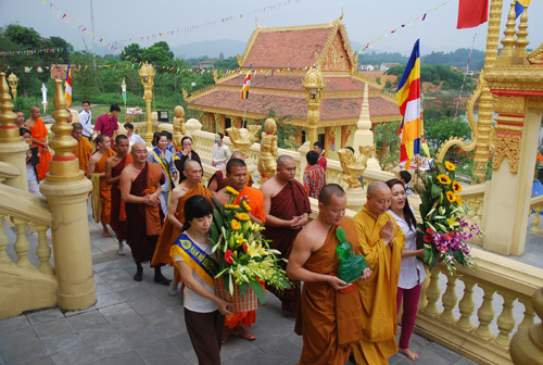 Les cloches et les gongs des pagodes annoncent le «Maha Sangkran» qui marque le passage d’une année à une autre. Pour ce premier jour de fête, il est de coutume de se rendre à la pagode pour y brûler des bâtonnets d’encens et se prosterner devant le Bouddha. Il est également de bon ton d’utiliser de l’eau bénite pour se laver le visage le matin, la poitrine le midi et les pieds le soir avant d’aller se coucher.