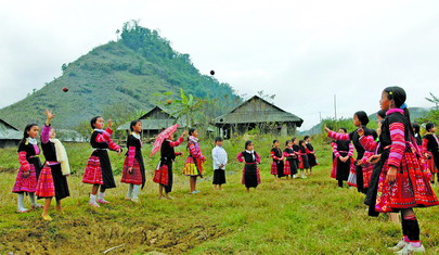 Quand finissent les rites à l’intérieur débutent les festivités à l’extérieur. Les Mong commencent leurs promenades printanières à partir du quatrième jour de l’an. On va planter des perches rituelles sur de vastes terrains où se tiennent des activités festives. Lancement de boule d’étoffe colorée appelée « pao », danse au son des flûtes de pan, jeu de toupie, tir d’arbalète… Ces jeux folkloriques sont indispensables au rendez-vous. Mais c’est le fameux jeu papao qui attire le plus grand nombre de participants. Les règles veulent que deux équipes soient formées, l’une féminine et l’autre masculine. Les joueurs essaient d’attraper une balle d’étoffe appelée papao qui est lancée dans l’air. La trajectoire de la papao tissera, par la suite, des liens harmonieux entre eux.
