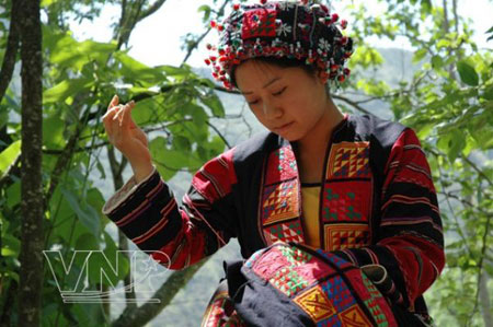 La tradition veut que les femmes s’occupent elles-mêmes de leurs tenues de mariage. C’est pourquoi elles sont initiées très tôt à la couture. Lung Thi Huyen :