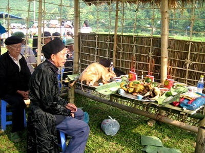 L’arrivée du printemps coïncide bien sûr avec le début de la saison agricole. Dans chaque maisonnée règne une ambiance de fête. Les femmes commencent à préparer les offrandes rituelles : un coq, du riz, du maïs, des noix d’arec, des feuilles de bétel, et surtout, une jarre d’alcool parfumé. Elles choisissent ce qu’il y a de meilleur pour les génies. Quant aux hommes, ils partent en quête de jolis arbres, qui servent ensuite à faire les perches de rituels, sous lesquelles ont lieu les cérémonies. « Oh Giàng, mon Dieu ! Une année vient de s’écouler. Une nouvelle année arrive. Grâce à vous, nous sommes tous heureux. Veuillez descendre dans ce monde pour que nous puissions vous témoigner notre gratitude !...» La cérémonie elle-même commence par ces invocations, prononcées par un maître de rituels. Ensuite, la tradition veut que chacun vide un bol rempli d’alcool, en guise de voeux de bonheur et de santé, le tout au son des flûtes de pan et des gongs.