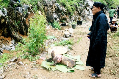 « La fête est célébrée dans tout le hameau. Tout le monde apporte des offrandes : un bouc, des poulets, du riz, de l’alcool... Que sais-je encore... Tout est offert au génie de la forêt. » nous dit Trang Min Diu, de la commune de Sung Chang.