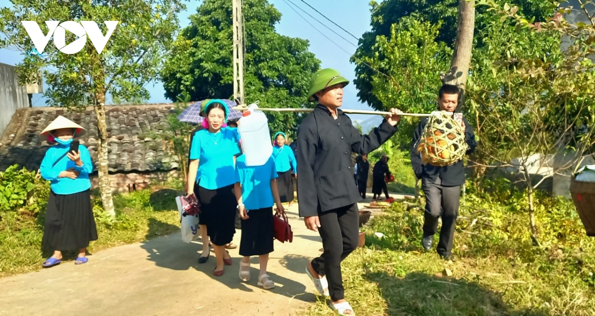 Le nombre de cadeaux et le nombre de participants aux cortèges, du côté du mari comme de la mariée, sont toujours des nombres pairs, ce qui traduit la complétude, l’harmonie et le bonheur. Le cortège du côté de la mariée comprend aujourd’hui deux demoiselles d’honneur, deux autres amis de la mariée et quatre des membres de la famille de son père et de celle de sa mère. L’un après l’autre, ils se succèdent dans l’ordre jusque chez le marié, fait savoir Ninh Van Thiêt, membre de la délégation de la mariée.