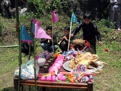 « Par la même occasion, on rend hommage au génie tutélaire du village. De manière générale, on invoque les divinités dans l’espoir de rester en bonne santé et de bénéficier d’un temps clément et propice à l’agriculture. » nous dit San Chang, un Giay de Sapa.