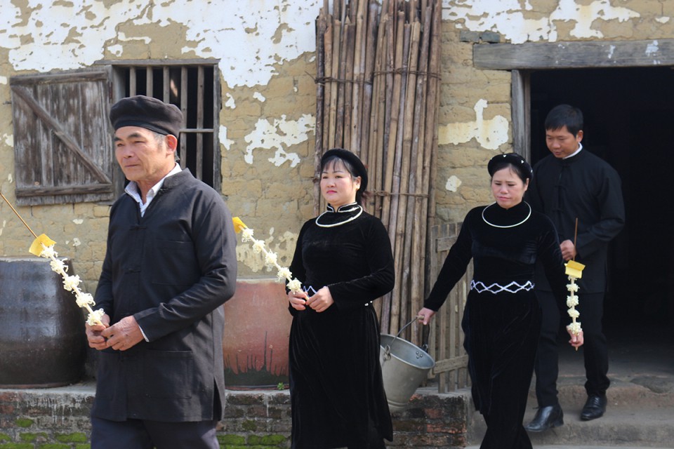 Direction Binh Liêu, un district montagneux de la province de Quang Ninh. Au dernier jour de l’année lunaire, la famille de La Thi Hông se retrouve au grand complet. Dès le petit matin, son fils cadet a ramené de la forêt un beau bambou au tronc tout droit et au feuillage touffu qu’il a érigé sur la terrasse. Son fils aîné et sa femme ont rangé et nettoyé la maison, et les meubles dépoussiérés ont repris leur éclat. Des morceaux carrés de papier rouge ont été collés sur l’autel des ancêtres, sur la porte principale et sur les arbres. Dans un coin de la maison, la pioche, la charrue et le panier de paddy sont rangés, «scellés» aussi d’un papier rouge carré, qui est pour les Tày une sorte d’ordonnance de repos méritée après une année de travail.