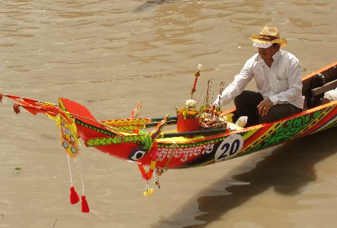 Etant donné le milieu de vie semi-lacustre qui est le leur, les Khmers ont inventé un large éventail de barques et de jonques, et notamment la pirogue ngo. Fabriquée à base d’hopea, qui est un bois imputrescible, cette embarcation longue de 30 mètres, équipée d’une quarantaine de rames, n’est mise à l’eau lors du 10ème mois lunaire, pour la fête de la lune, la fête Ok om bok, la deuxième plus grande fête de l’année après le nouvel an lunaire khmer, dit Chol chnam thmay, qui tombe au 4ème mois lunaire, coïncidant ainsi avec l’intersaison agricole. Châu On, de l’Institut bouddhique Théravada du Sud Vietnam :