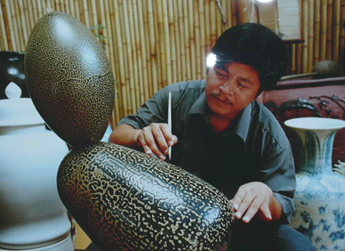 ![]() Un artisan du village de Kieu Ky en train de perfectionner son produit