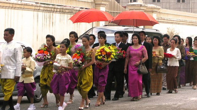 Quant à la cérémonie de mariage elle-même, elle se déroule chez la jeune fille, les Khmers étant un peuple matriarcal.