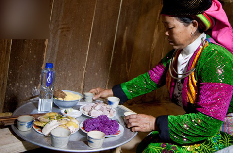 Les jeunes Mong portent toujours des costumes traditionnels le jour du mariage. Vàng A Mua s’en souvient :« La mère de la jeune fille va préparer des vêtements pour sa fille et pour son gendre. Mais lorsque les mariés arrivent chez le jeune homme, ils changent de vêtements. Ils revêtent ceux que leur ont préparés les parents du marié : une tenue noir pour la mariée et une costume blanche pour le marié. »