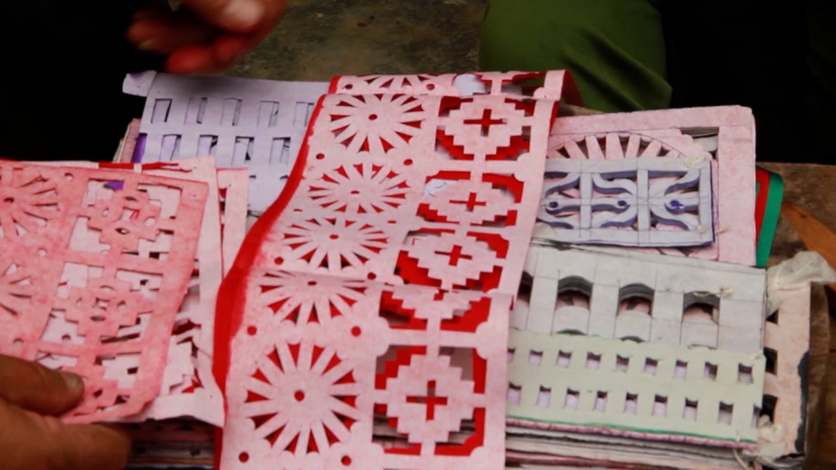 Faire venir des artisans pour confectionner des tableaux et des objets votifs est une obligation pour tous les Nùng Din qui se respectent lorsqu’ils perdent quelqu’un de leur famille. Le papier servant à décorer les tableaux ou les objets est perforé ou poinçonné à l’aide de ciseaux, de couteaux ou de lames de bambou. Les couleurs les plus récurrentes sont le violet, le rouge, le vert, le jaune, le noir et le blanc, nous fait savoir Nùng Chan Phin, ancien directeur adjoint du service de la Culture, des Sports et du Tourisme de la province de Lào Cai.