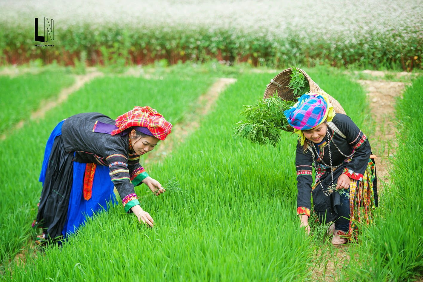 Traditionnellement, le rouge et le vert sont les deux couleurs emblématiques des deux genres. Les hommes portent des vêtements décorés de rouge, symbole de leur rôle dominant dans la famille. Quant aux femmes, elles préfèrent le vert, symbole de la douceur féminine. Luc Thi Hue :