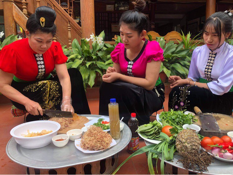 Si d’autres peuples n’utilisent la peau de buffle que pour couvrir leurs tambours, les Thai s’en servent pour créer une salade pour le moins originale. Quàng Thi Sinh, une autre cuisinière de Son La, nous en donne la recette.