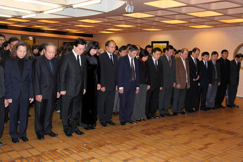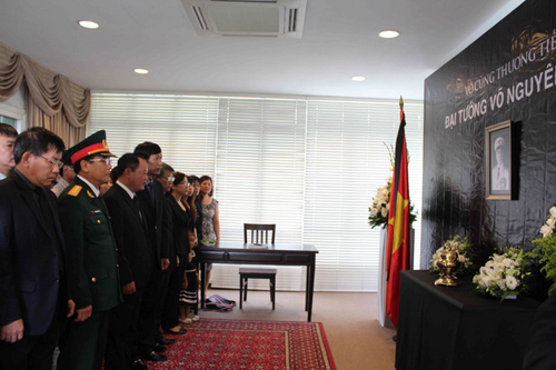 (VOVworld) - La disparition du général Vo Nguyên Giap cause de grands regrets non seulement aux Vietnamiens, mais aussi aux amis étrangers. Ces derniers jours, les ambassades du Vietnam à l’étranger ont organisé une cérémonie afin de lui rendre un dernier hommage.